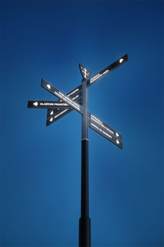 Knowing how to navigate at night will no longer be a problem. Our information systems help visitors of the towns and cities find what they are looking for. Whether it's historical buildings, institutions or street names, such a clear information column will lead them to the right place... The Kvadrum Light is a unique addition to a town or village. The pole is ecological and economical, made of noble materials. The lighting follows the standard wiring standards and regulations in force in the EU.