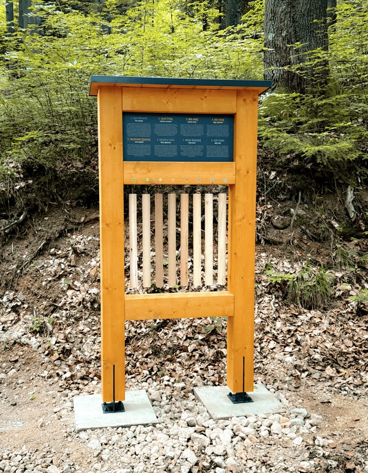 Zábavno-edukačný prvok pre deti aj dospelých. Dendrológ vás naučí rozoznávať rôzne druhy dreva ako breza, lipa, jedľa, jaseň, borovica a ďalšie. Dotknite sa, porovnajte a objavujte prírodu cez hmat a zvedavosť.